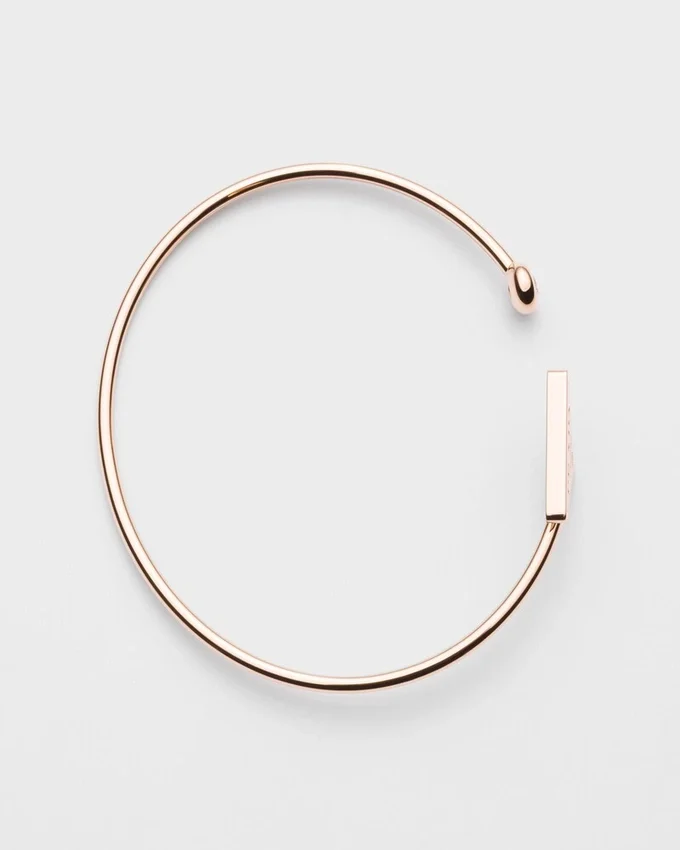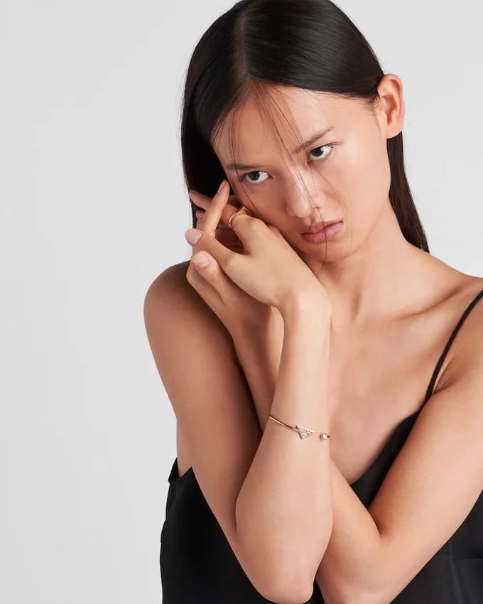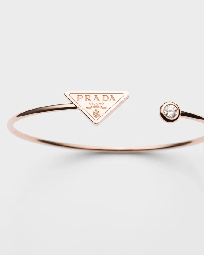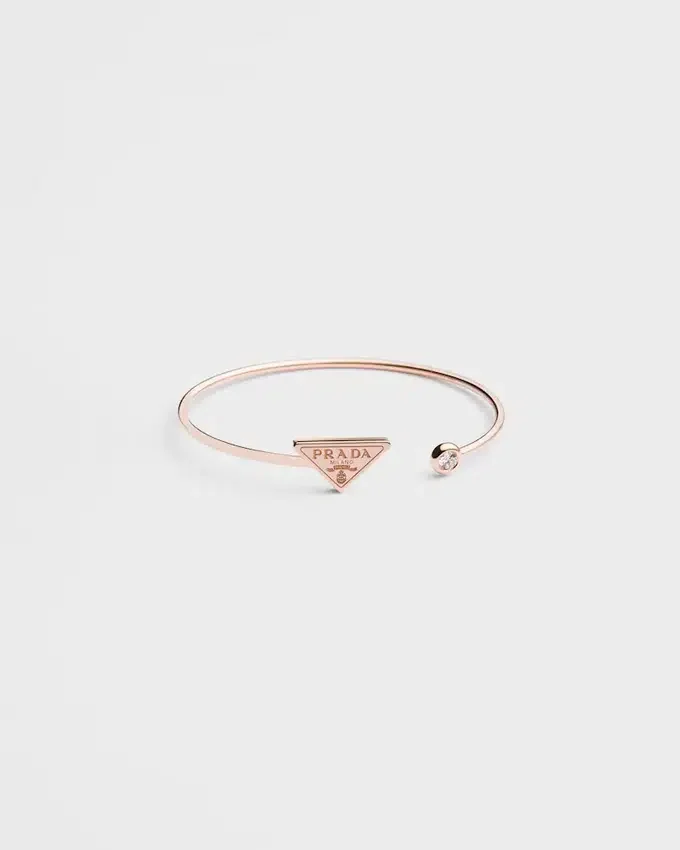 This Bracelet with an Elegant Design Made of Recycled Rose Gold Embodies the Dual Soul of Prada. A Precious Diamond Creates a Brilliant Play of Light Together with the Iconic Triangle, First Introduced in 1913 as a Hallmark on Mario Prada’s Steamer Trunks. The Brand’s Emblematic Symbol Merges with Refined Precious Stones in a Collection of Sustainable Fine Jewelry. The Bracelet, Which Can Be Worn Alone or with Other Jewels, is Characterized by Its Elegant, Structured Design.