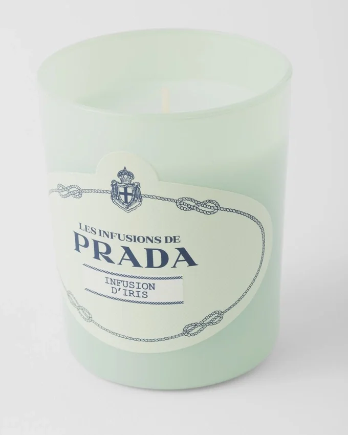 Pure and Elegant, Infusion D’iris Candle is the Signature Scent of the Collection Les Infusions De Prada. The Candle Reveals an Exquisite Iris Blended with Fresh Top Notes of Neroli, Mandarin and an Enveloping Base of Benzoin Accord.—Infusion D’iris Candle Encapsulates All the Prada Codes Within an Elegant Prada Green Opaline Glass Signed by a Saffiano Embossed Label in the Shape of the Historical Logo. This Luxurious Object Brings Home the Sophisticated Spirit of Prada.