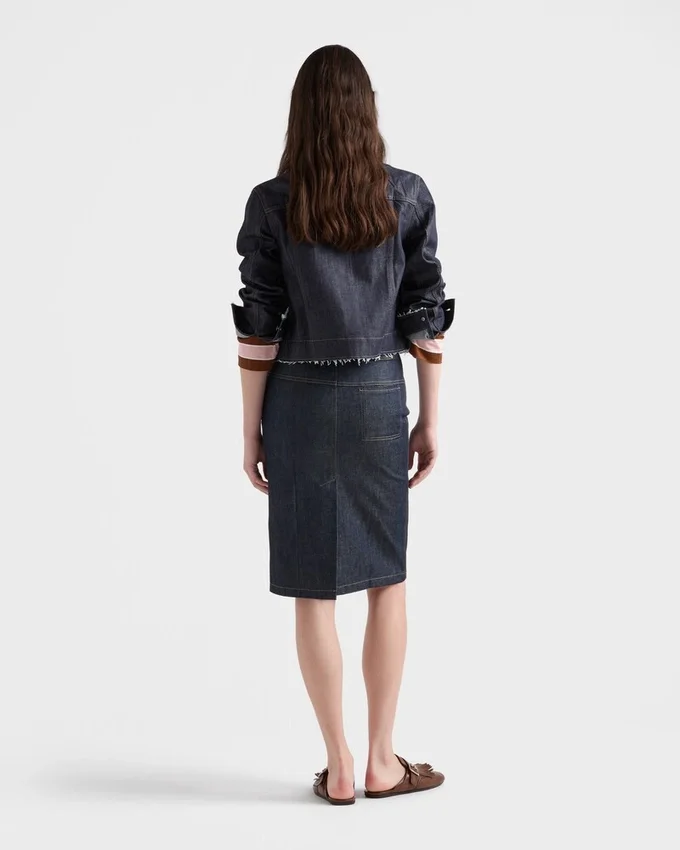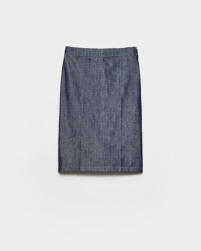 Clean Lines and a Strong Character: Raw Denim Sculpts the Sleek Silhouette with a Feminine Pencil Cut. The Back Pocket and Leather Label Celebrate Candid Beauty with an Urban Character.