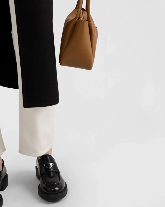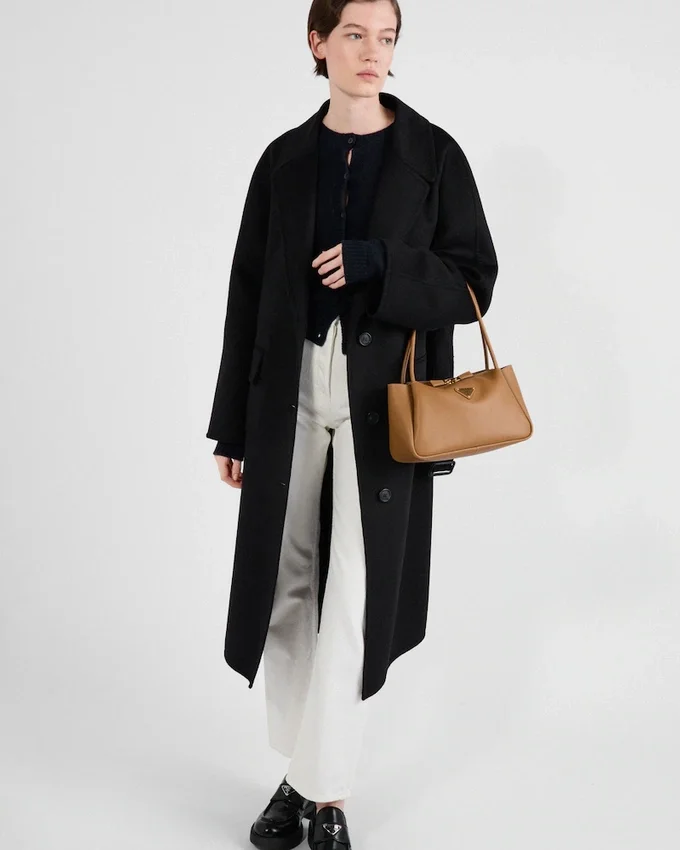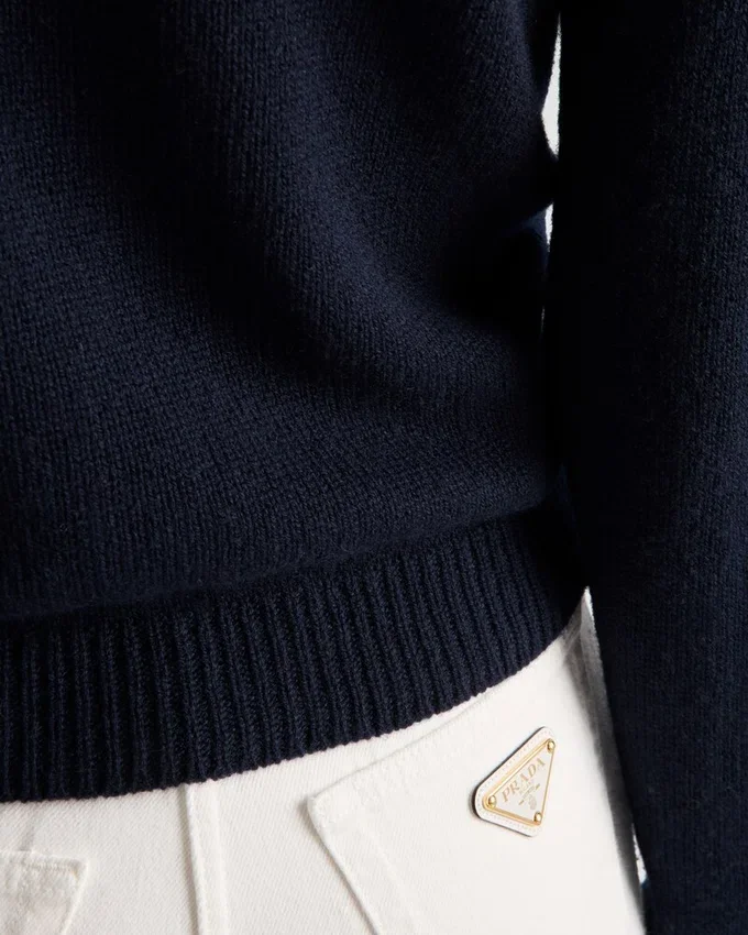 These Denim Jeans Have a Classic Five-Pocket Silhouette Defined by the High-Rise Waist and Straight Leg. The Style with Contemporary Allure is Decorated with the Enameled Metal Triangle Logo.
