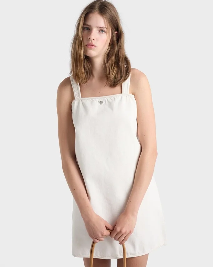 With Materials and Silhouette Inspired by the Workwear World, This Denim Mini-Dress Features the Geometric Triangle Logo and Has a Vintage Look Due to the Washed Treatment.