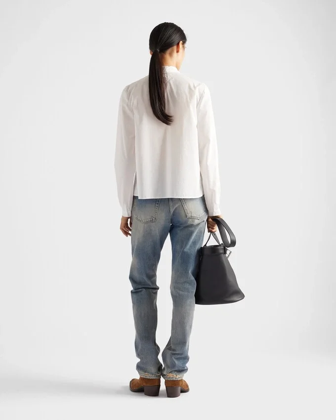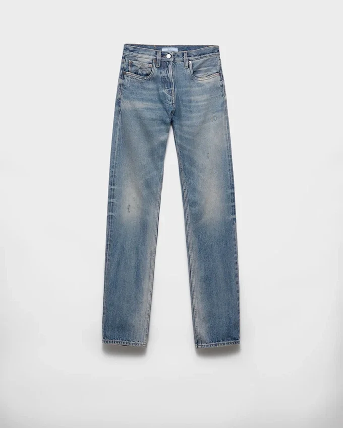 Bleached Denim Gives Vintage Allure to These Low-Rise Jeans with a Tapered Cut. Contrasting Top-Stitching and Distressed Details Complete the Garment with Distinctive Style Decorated with an Archive Logo Printed on the Label.