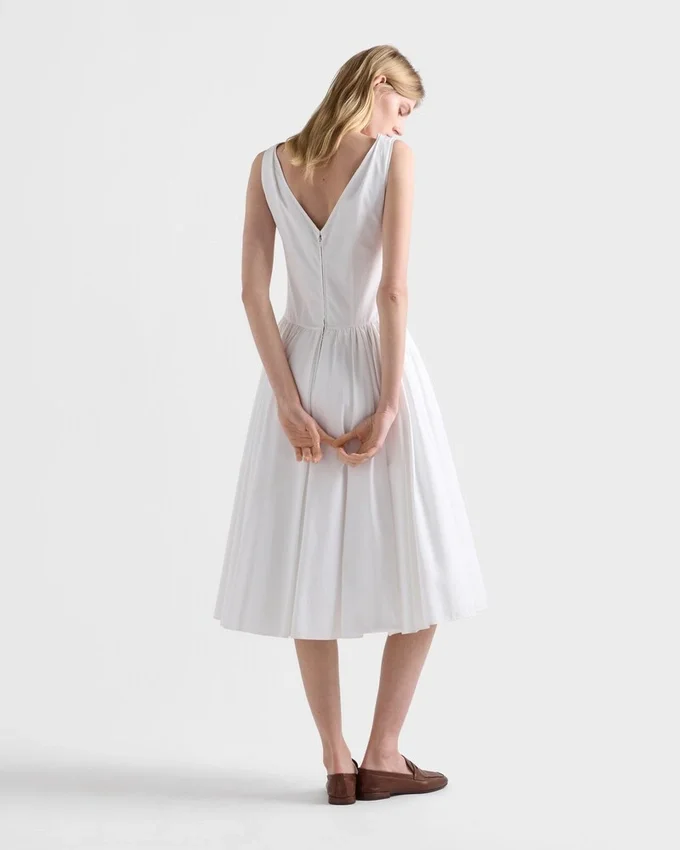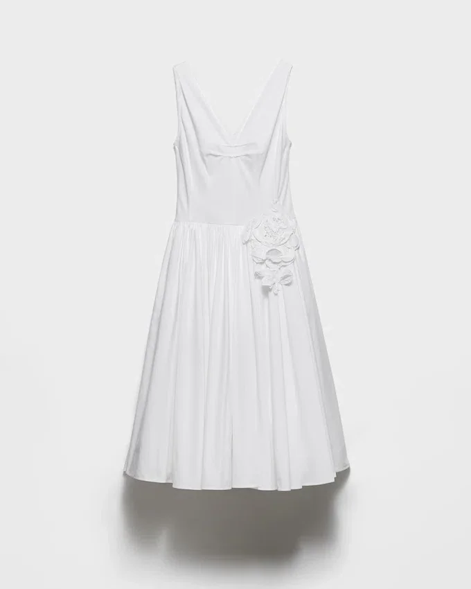 This Dress with Sophisticated Lightness is Made of Cotton Poplin That Gives the Feminine Silhouette an Unexpected Character. The Silhouette Blending Retro References and Contemporary Notes Opens into a Full Skirt with Soft Volumes While Tonal Floral Appliquas Complete the Look with a Romantic Touch.