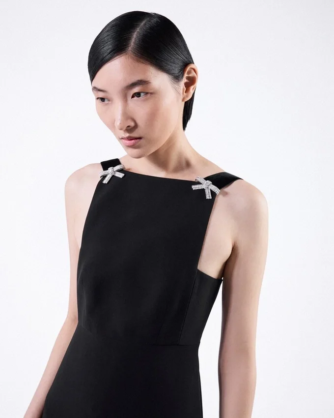 Small Bows, with Luminous Details, Embellish This Cady Dress That Exudes Refined Elegance.