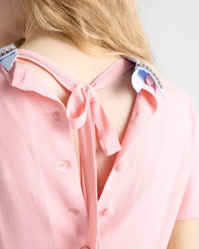 This Dress Made from Marocain Crepe Embodies an Intimate Style and Innate Elegance. Retro Details and Feminine Touches Are Applied in Unexpected Ways, Such as the Asymmetrical Collar Embellished with Sparkling Embroidery.