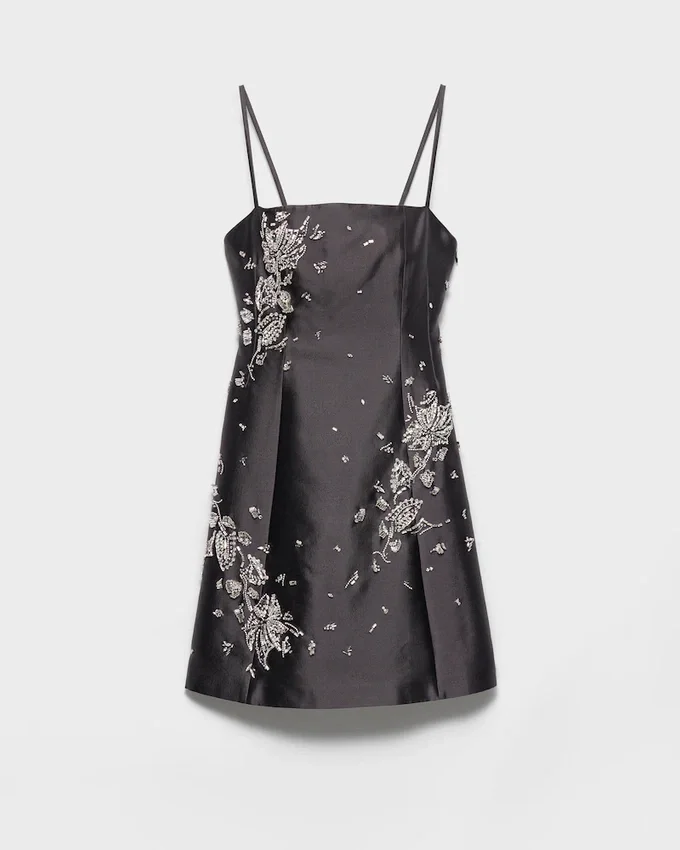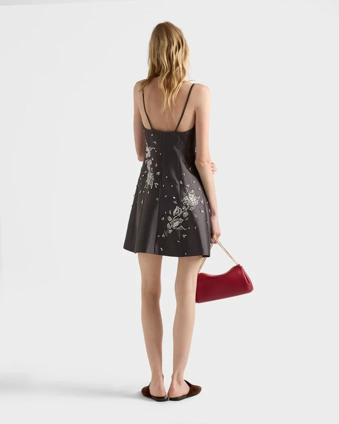 The Contemporary Elegance of This Mini-Dress Comes from the Harmony Created with Pure Lines and Precious Details. Sparkling Embellishments Enrich the Simple Dress Made of Wool and Silk with a Refined Fit-And-Flare Silhouette and Spaghetti Straps.