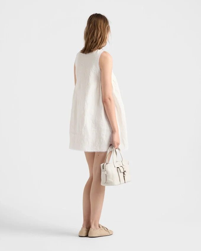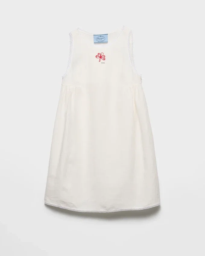 This Dress Evokes a Poetic Memory of a Retro Summer Atmosphere with Its Simple and Delicate Silhouette. The Light Yet Distinctive Texture of Linen Enhances the Refined Simplicity of the Dress with Macrama Trim Completed with Contrasting Floral Embroidery.
