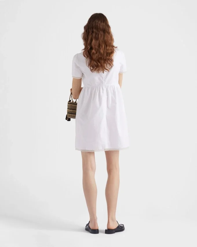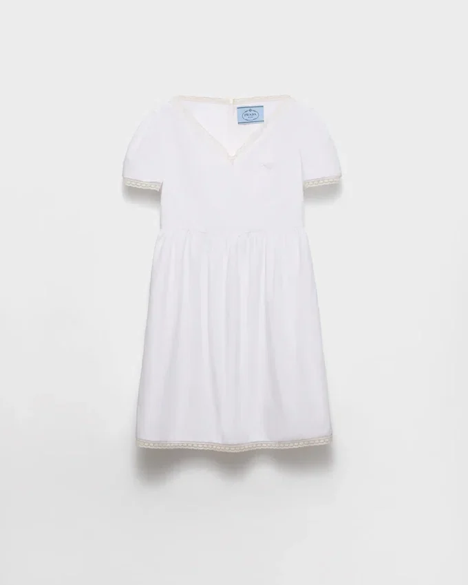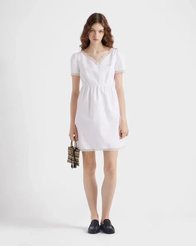 This Light, Delicate, Lingerie-Style Mini-Dress Combines Romantic Notes and Refined Vintage Details. The Airy Style is Embellished with Lace Trim Edging the V-Neck and is Decorated with the Triangle Logo.