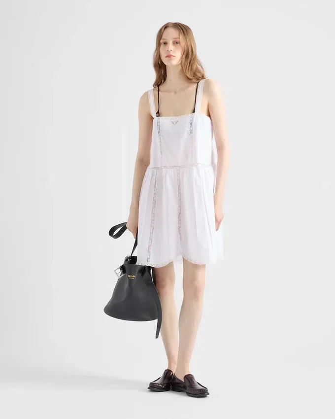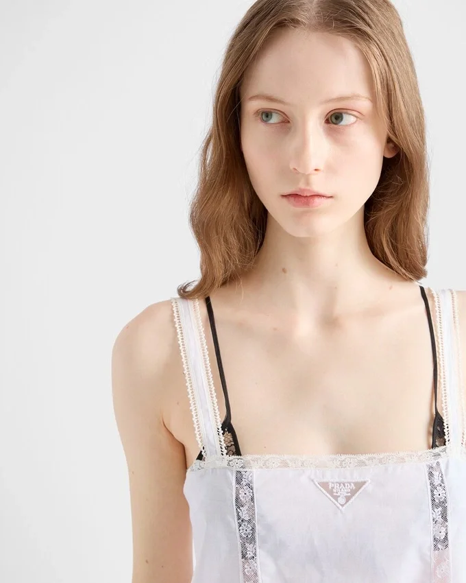 This Light, Delicate, Lingerie-Style Dress Combines Romantic Notes and Refined Vintage Details. The Airy Silhouette is Embellished with Lace Trim and the Iconic Geometric Shape of the Triangle Logo.