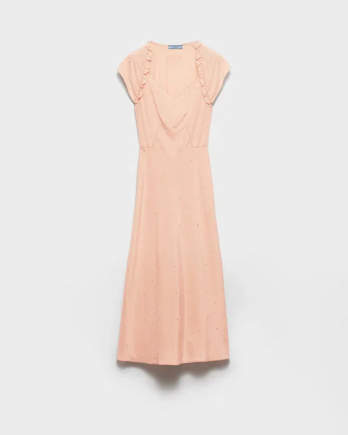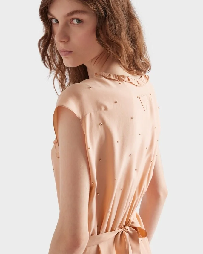 The Sophisticated Delicacy of This Dress is Defined by Its Flowing Lines and Romantic Details. The Light Silhouette Made of Habutai Silk is Embellished with Ruching, Alluring Vintage-Look Embroidery, and Micro-Appliquas That Create a Three-Dimensional Dot Pattern.