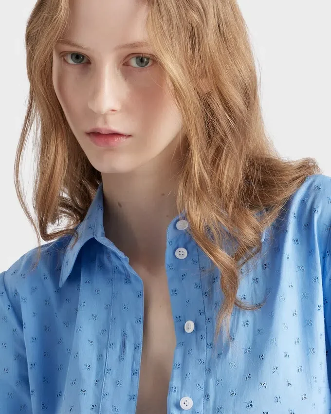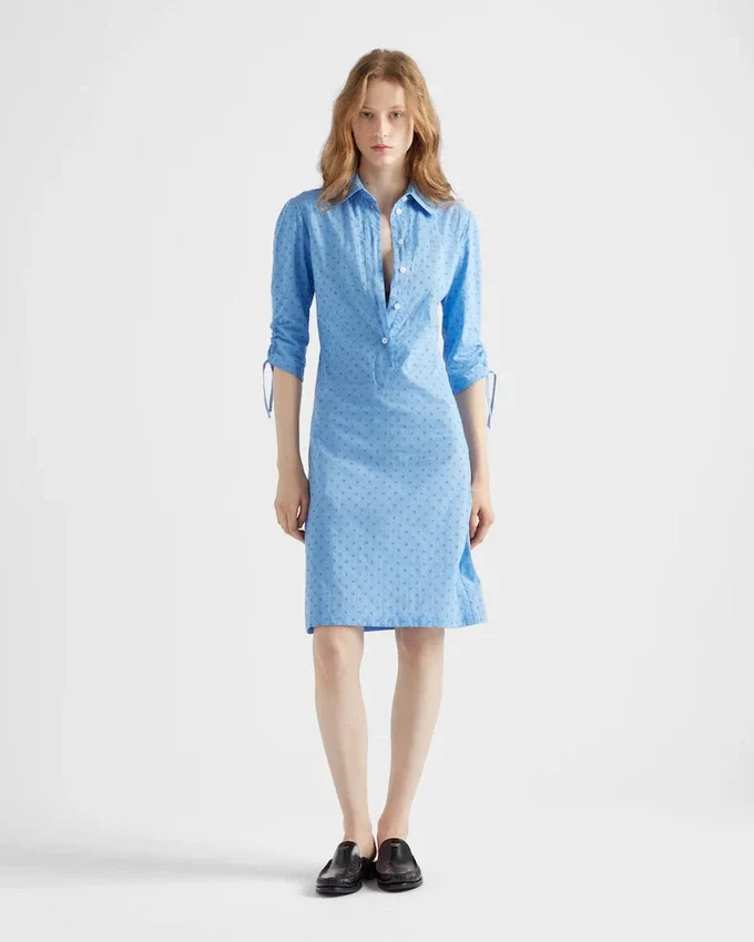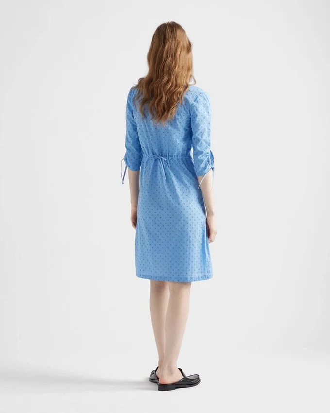 The Romantic Allure of Eyelet Lace Enriches the Design of This Straight Dress. The Light Style is Completed by a Drawstring on the Back That Defines the Silhouette and Completes It with a Refined, Feminine Note.