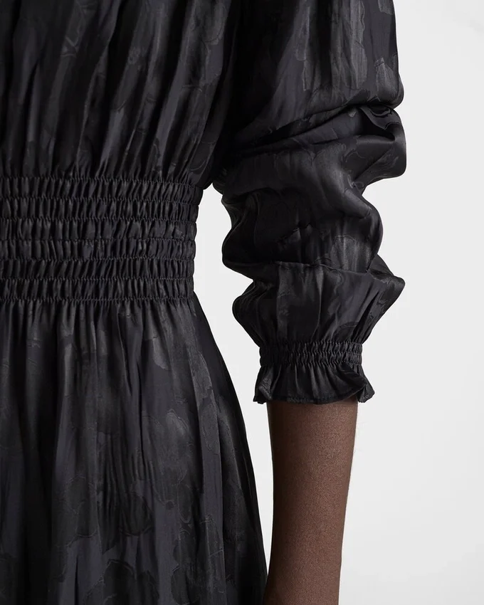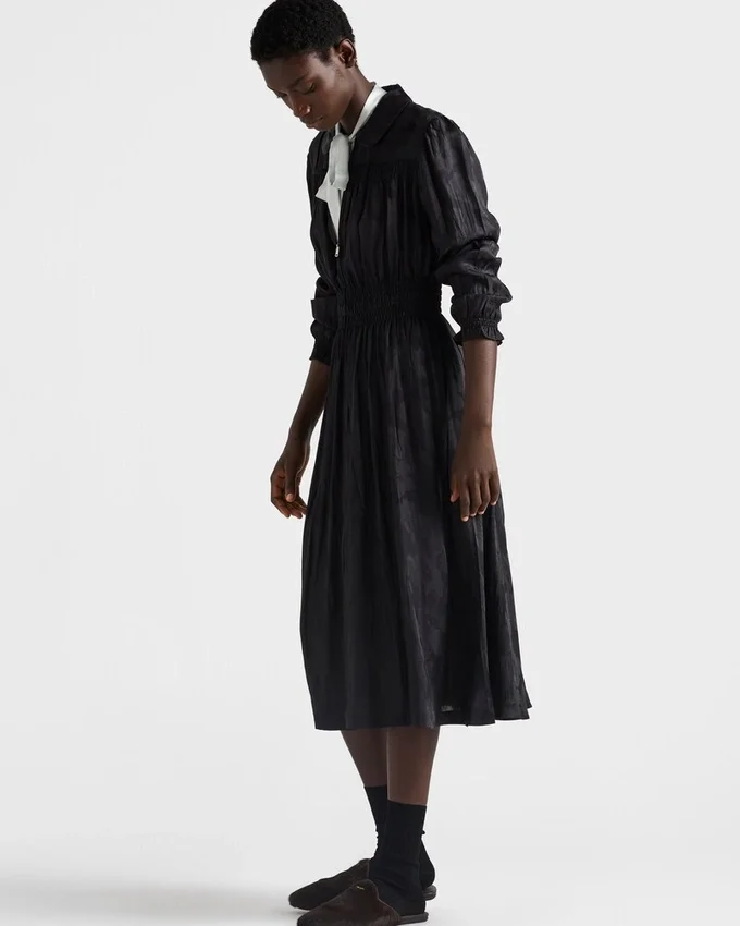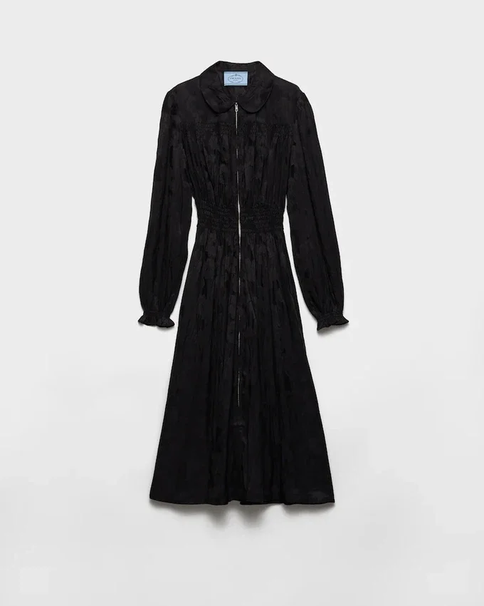 Romantic Details and Sporty Accents Elevate This Dress, Reimagining Femininity Through Unexpected Contrasts. The Silhouette is Enriched with a Jacquard Floral Pattern, Adding a Vintage-Inspired Charm to the Hybrid Design.