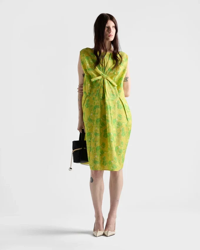 The Fall/Winter 2025 Collection Questions the Perception of Femininity and Redefines Its Emblematic Garments. This Dress Combines Loose Lines, Details with Vintage Charm, and a Fluo-Colored Floral Print, an Expression of Unconventional, Modernist Elegance.