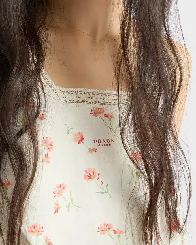 The Silhouette and Details of This Linen Dress Define a Romantic Garment with Vintage Allure. A Delicate Floral Print Embellishes the Airy Design Completed with Macrama Lace Trim.