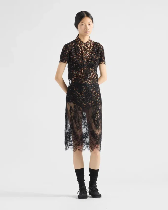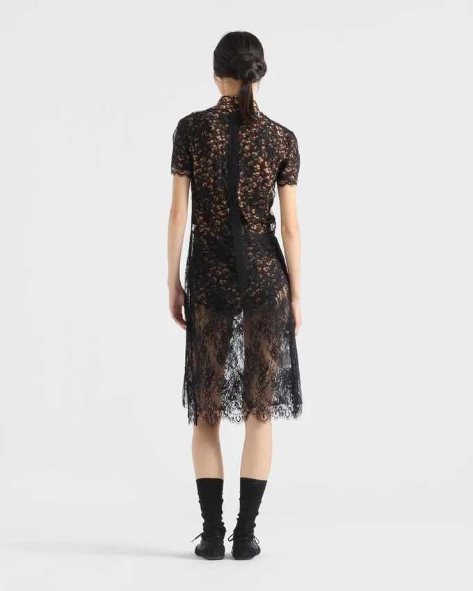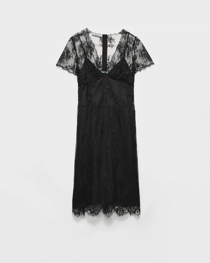 This Lace Dress with a Delicate, Timeless Silhouette Embodies Refined, Romantic Elegance. A Play of Transparencies Animates the Style with a V-Neck and Sleeves Decorated with Scalloped Edges.