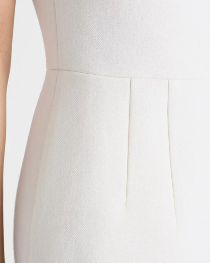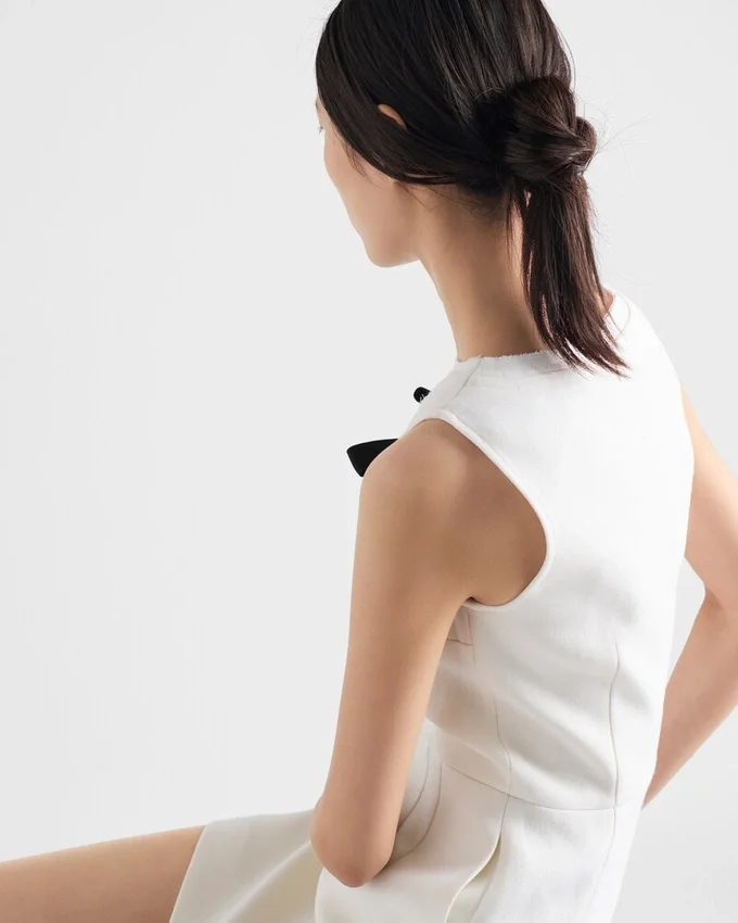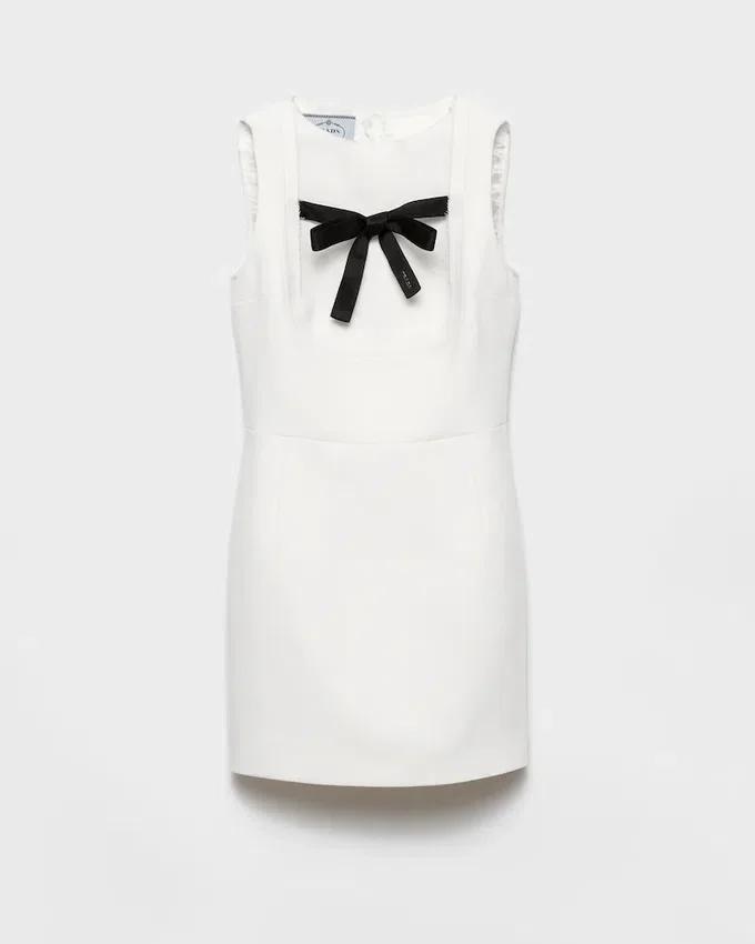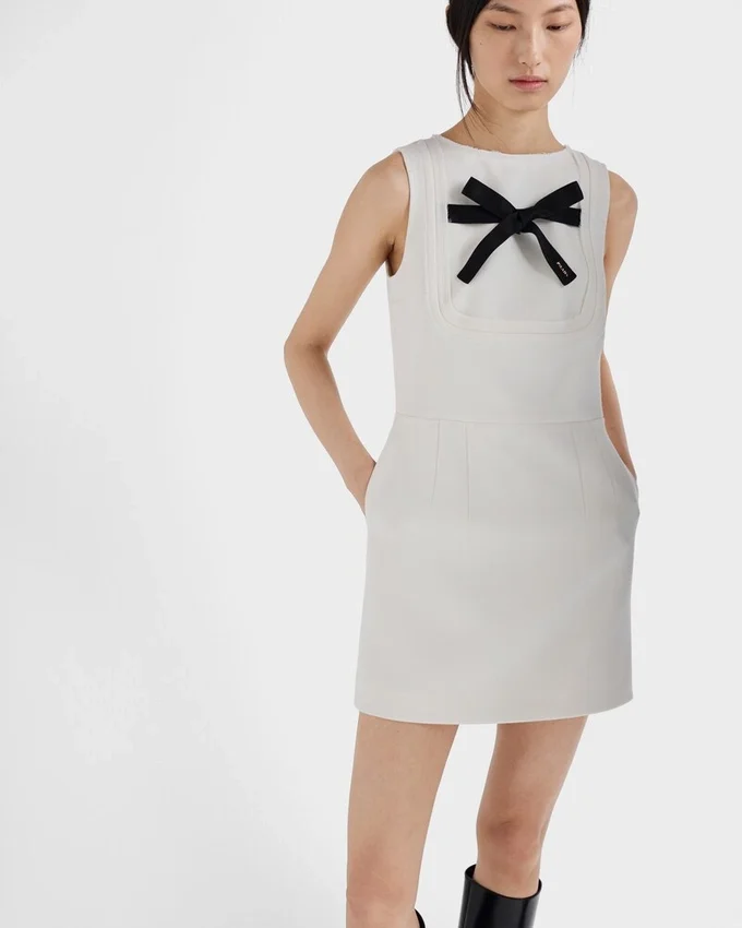 Clean Lines and Graphic Details. This Natta Dress Stands out for Its Straight Neck, Contrasting Bow, and Lettering Logo. This Simple Vision of Femininity Blends Rigor and Lightness.