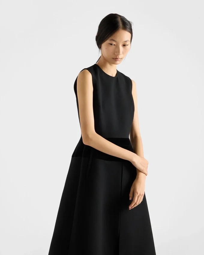 This Natta Fabric Dress with Bon Ton Allure and Contemporary Proportions Features a Sleeveless Silhouette and Full Skirt. Unexpected Interactions Define the Feminine Garment, an Expression of Free and Unconventional Elegance.