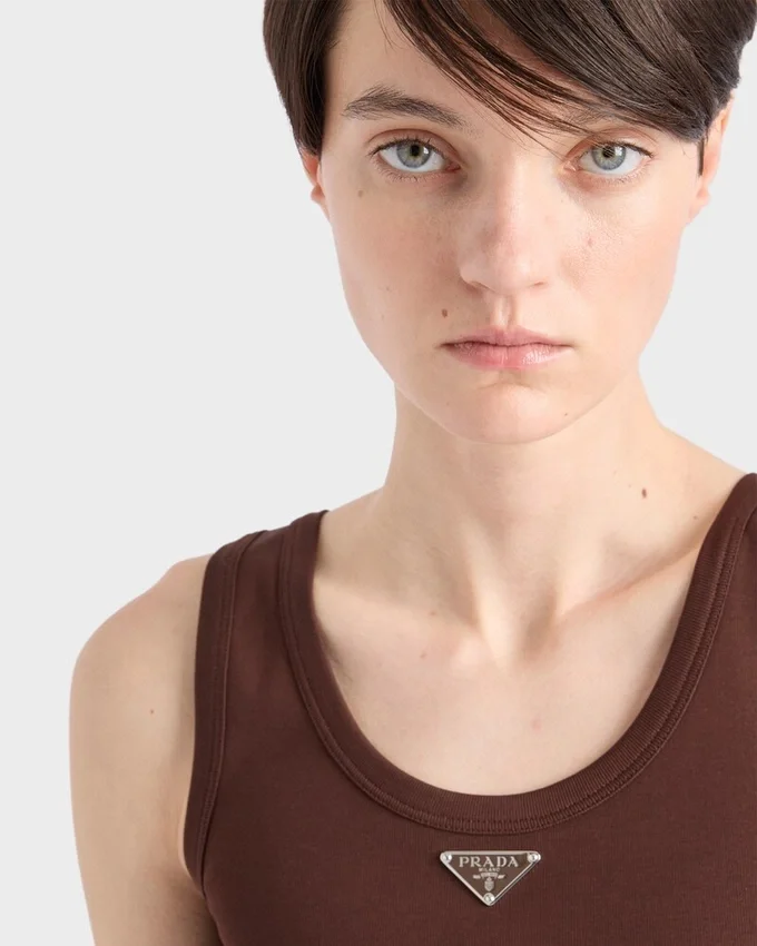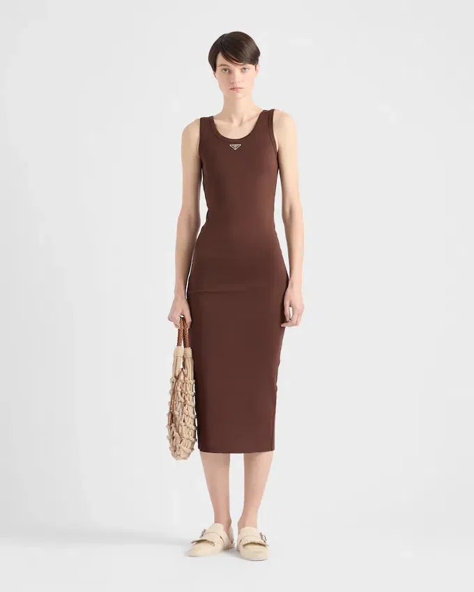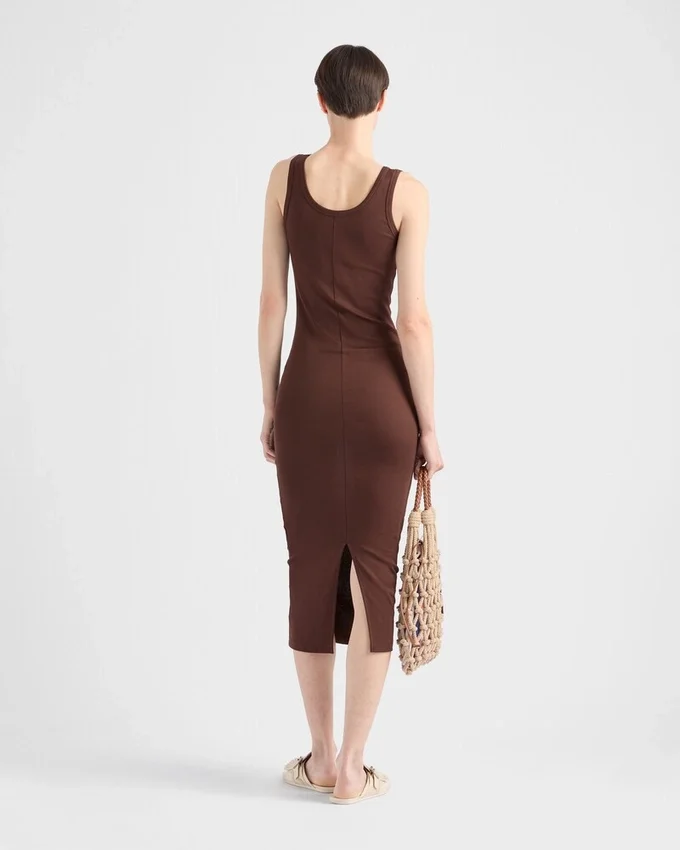 This Ribbed Cotton Dress Has a Sleek Silhouette with a Slim Fit. The Casual Style Characterized by a Back Slit is Embellished with an Enameled Metal Triangle Logo.