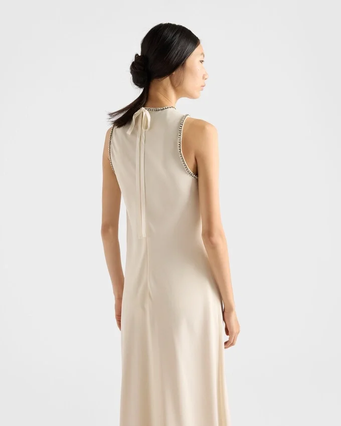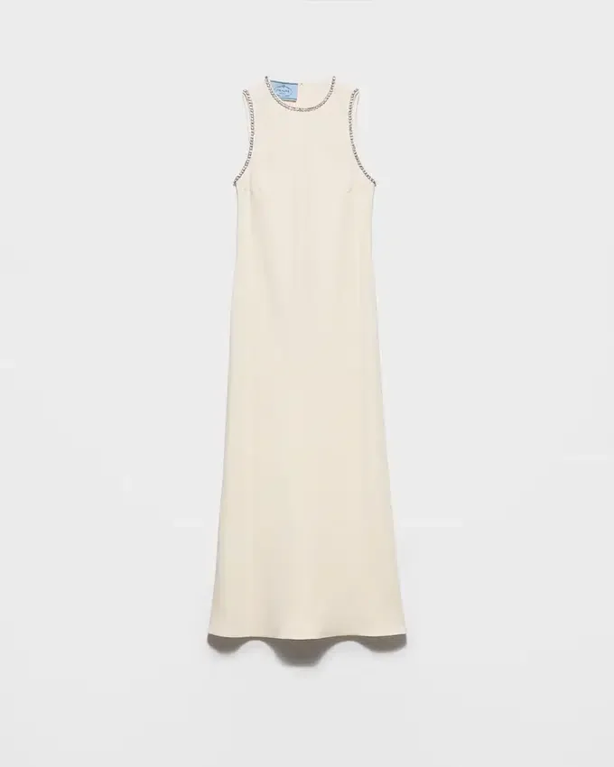 Pure, Minimalist Lines Are Enhanced by the Fluidity of Sablé Fabric. The Round Neckline and Flared Hem Express Modern Elegance That Favors Lightness and Sophistication.