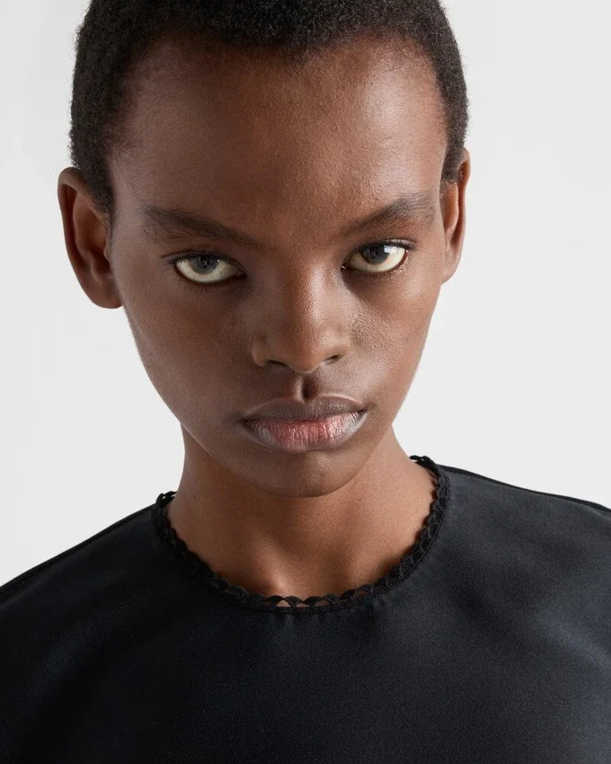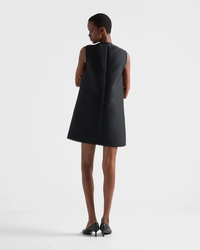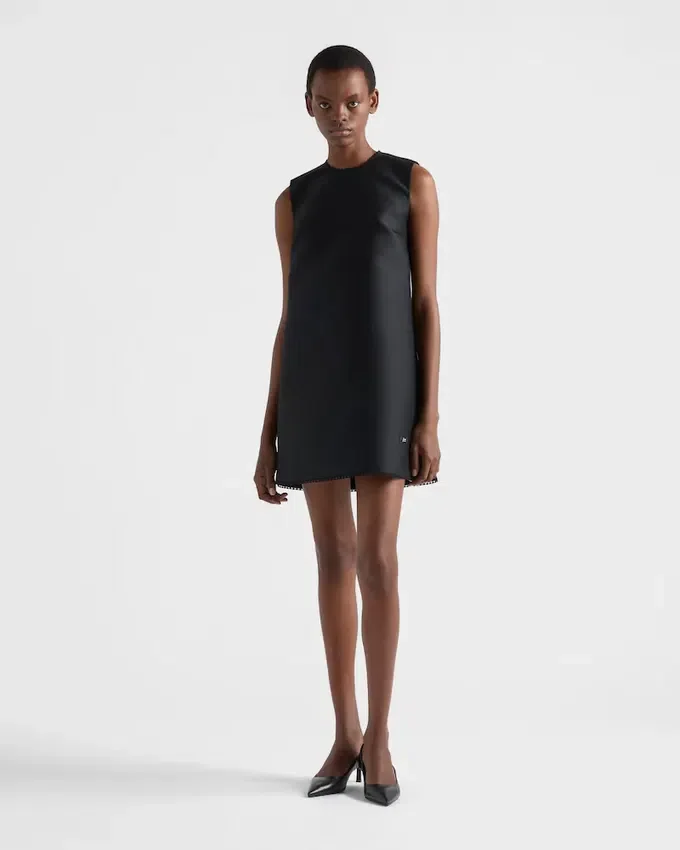 Unique Interactions Between Lines and Materials Define This Scuba Mini-Dress, Characterized by a Sleek Silhouette. Lace Trim Adds a Romantic Touch to This Contemporary, Hybrid Garment.