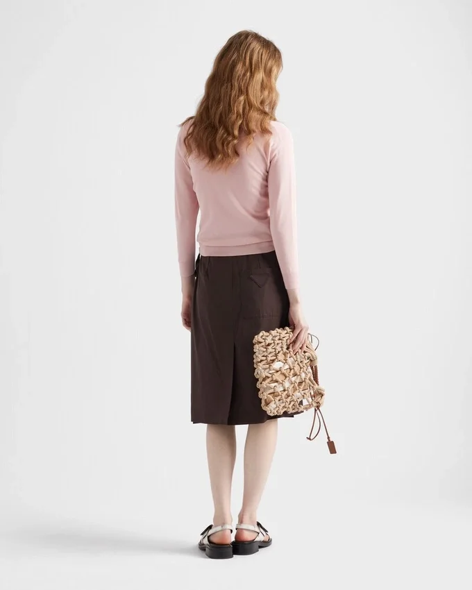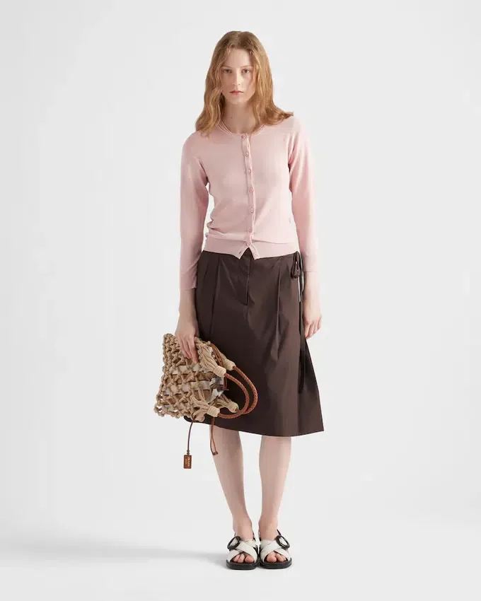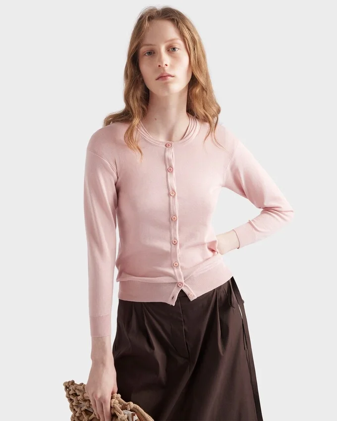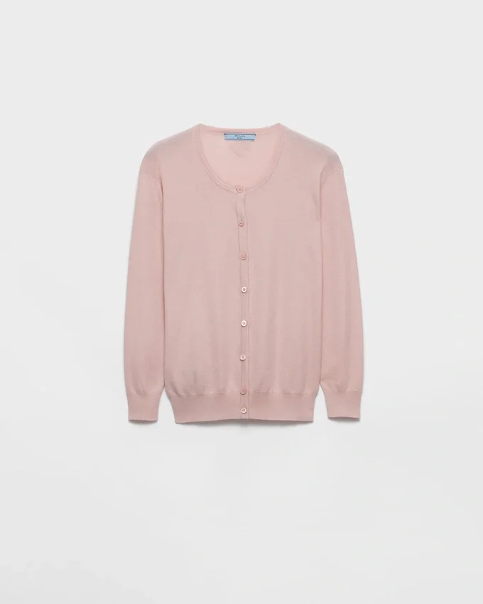 This Light Silk and Cotton Cardigan Has a Slim Fit and Three-Quarter Sleeves. Simple and Versatile, It is Distinguished by Its Button Closure and the Discreet Knit Triangle Logo.