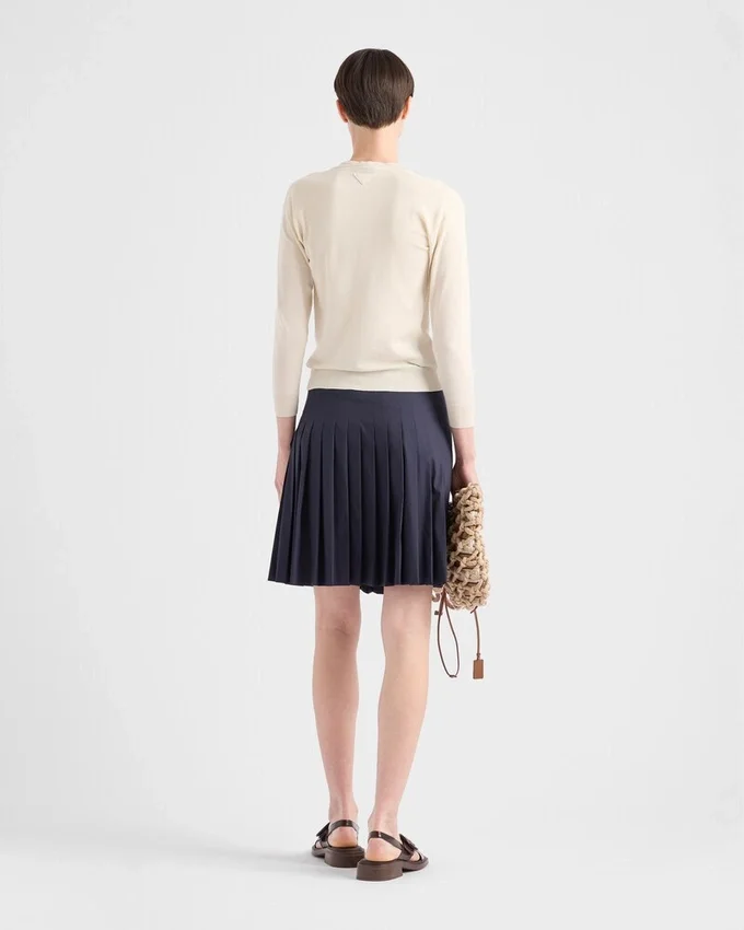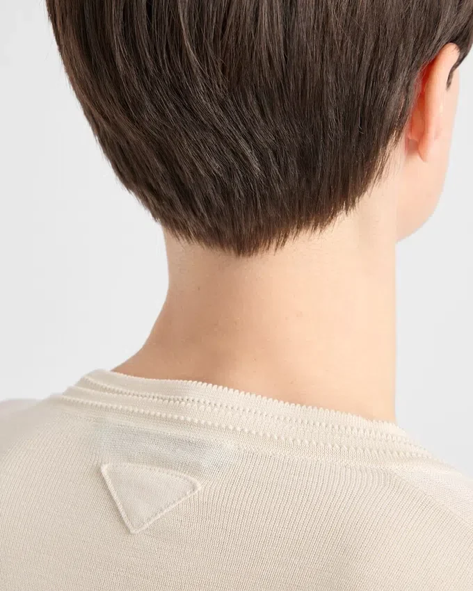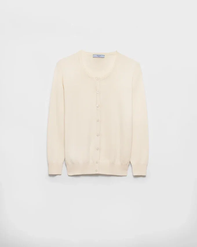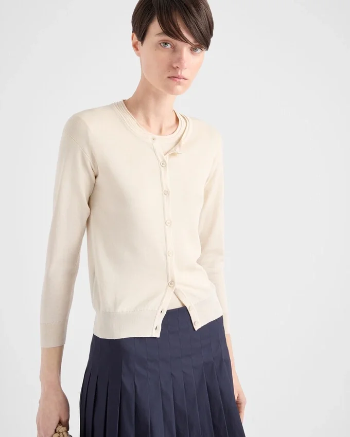 This Light Silk and Cotton Cardigan Has a Slim Fit and Three-Quarter Sleeves. Simple and Versatile, It is Distinguished by Its Button Closure and the Discreet Knit Triangle Logo.