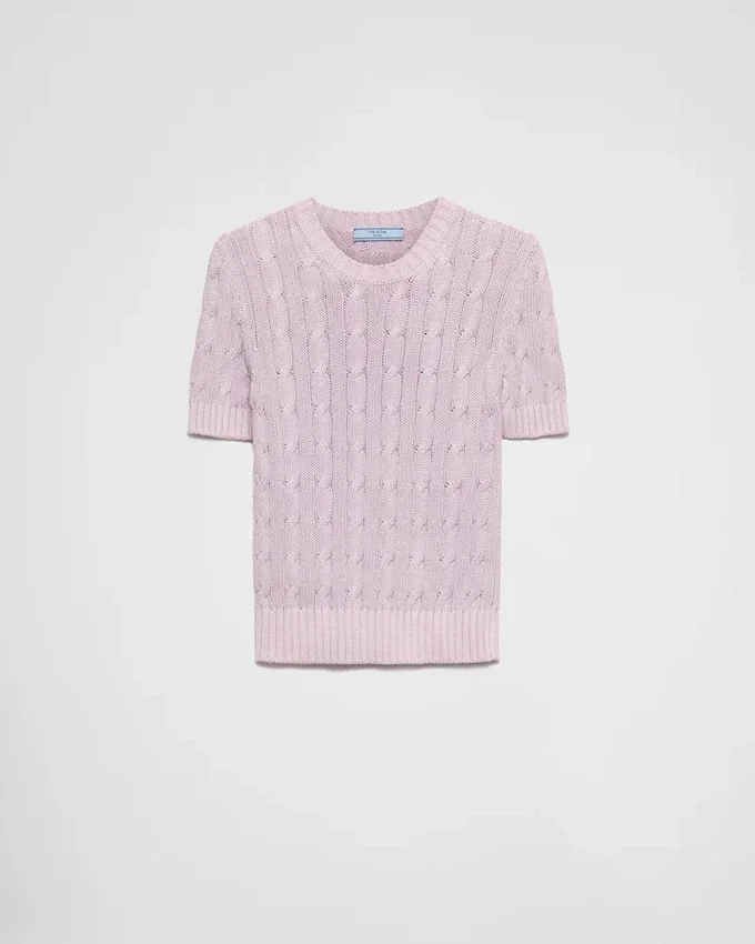 The Boxy Silhouette of This Short-Sleeved Sweater is Enriched by the Cable-Knit Motif That Adds Preppy Charm to the Design.