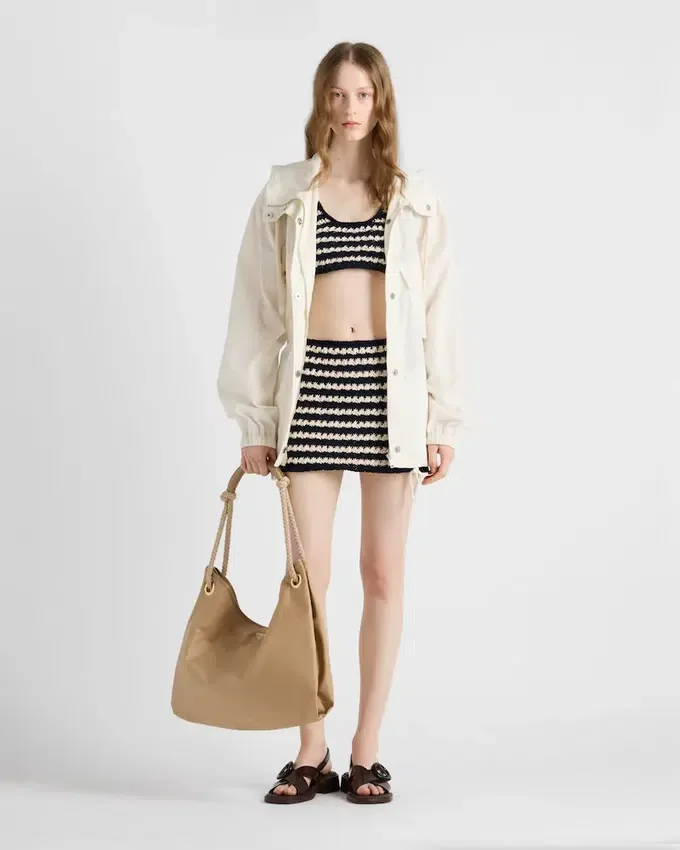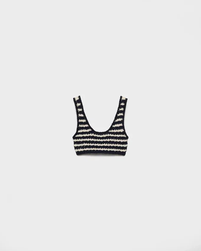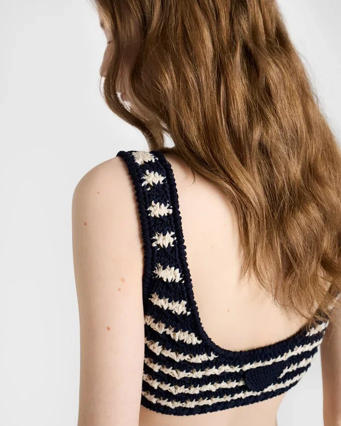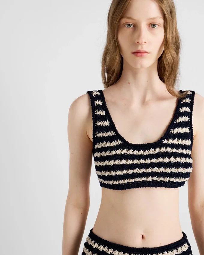 Nautical Style Code Are Reinterpreted in the Design of This Crop Top Made of Cotton Crochet. The Iconic Geometric Shape of the Triangle Logo Completes This Sporty Yet Refined Garment.