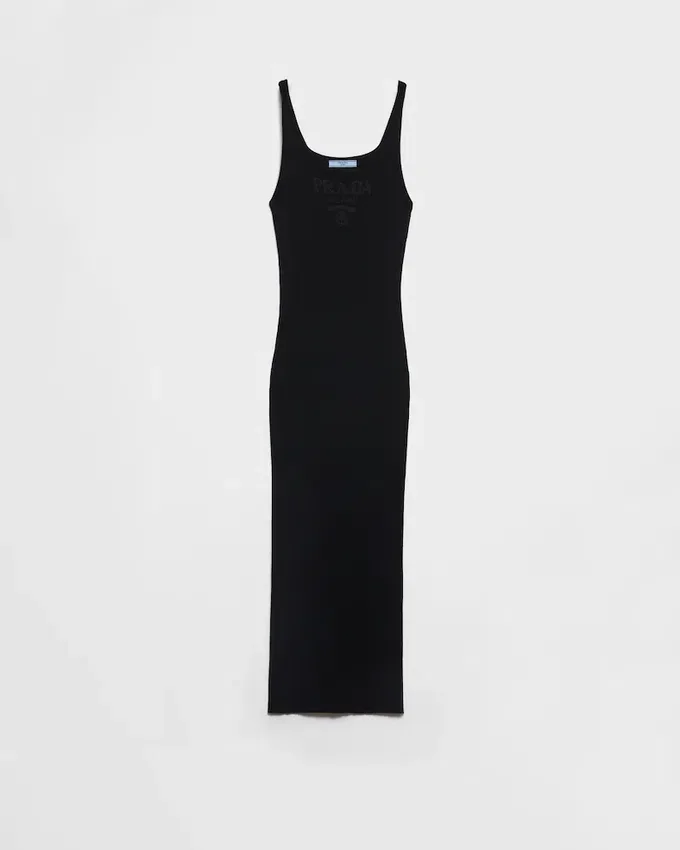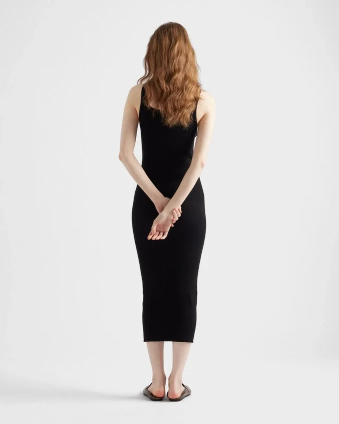 This Ribbed Knit Cotton Dress Has a Sleek Silhouette and Slim Fit, Embellished with the Jacquard Logo.