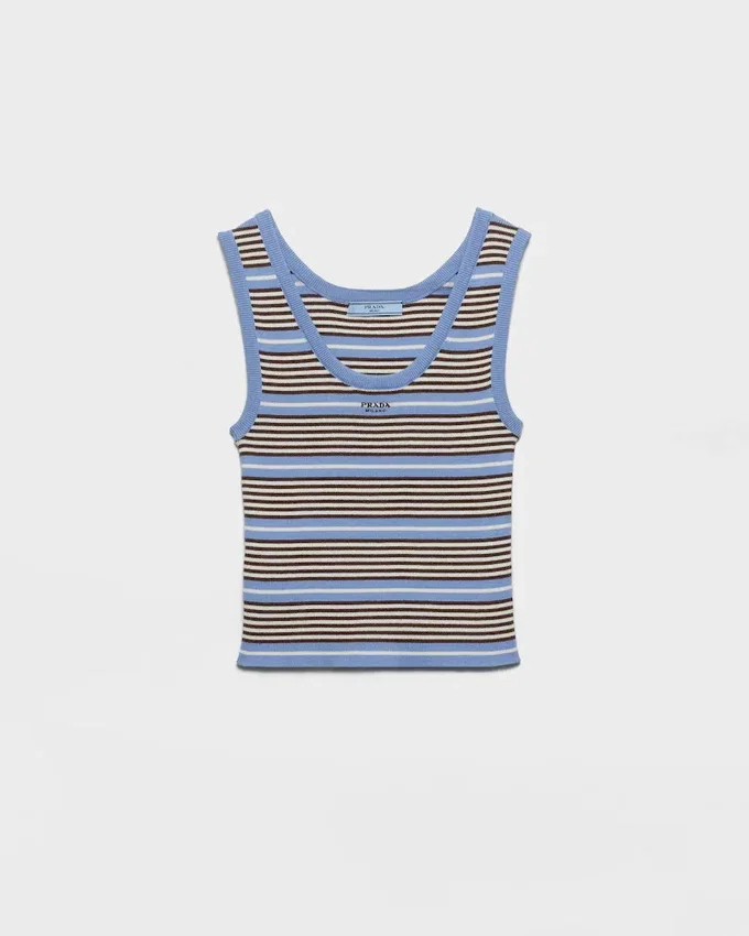 This Cotton Knit Tank Top is a Refined Interpretation of a Summer Classic for Everyday Looks. The Stripe Motif Enriches the Design of the Slim Fit Silhouette with Scoop Neck Decorated with the Lettering Logo Embroidered in a Contrasting Color.