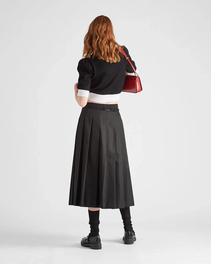 A Feminine, Retro Soul Characterizes This Cropped Cardigan with Contrasting Details. The Ribbed Knit Trim Adds a Refined Touch to the Garment Decorated with the Traditional Embroidered Logo.