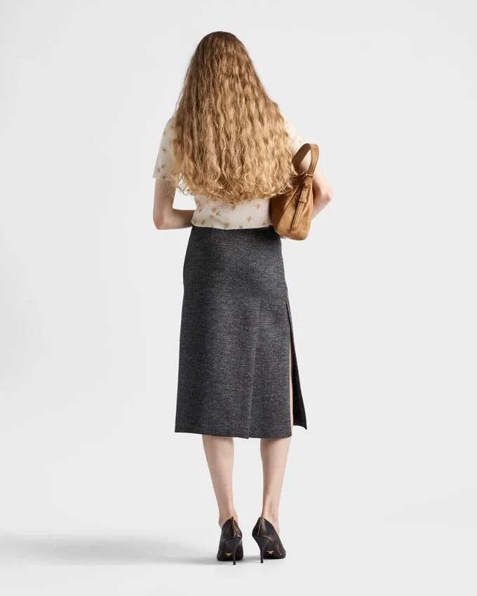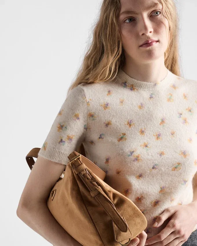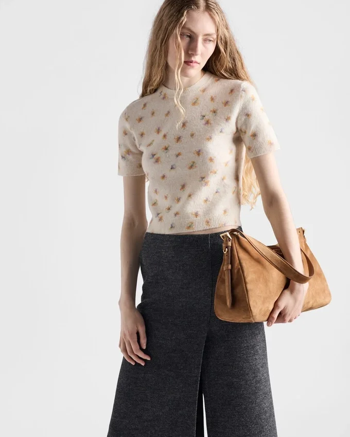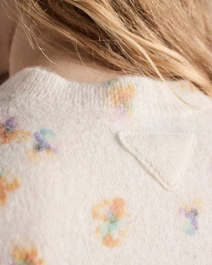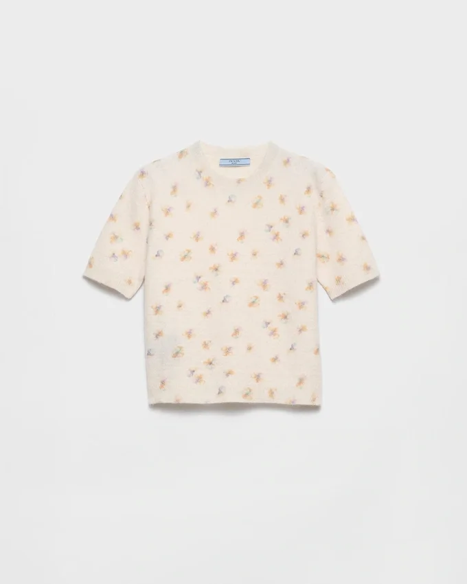 This Wool Sweater with Short Sleeves and a Slim Fit Combines Softness and Structure. The Design is Enriched by a Floral Print for a Romantic, Delicate Touch.