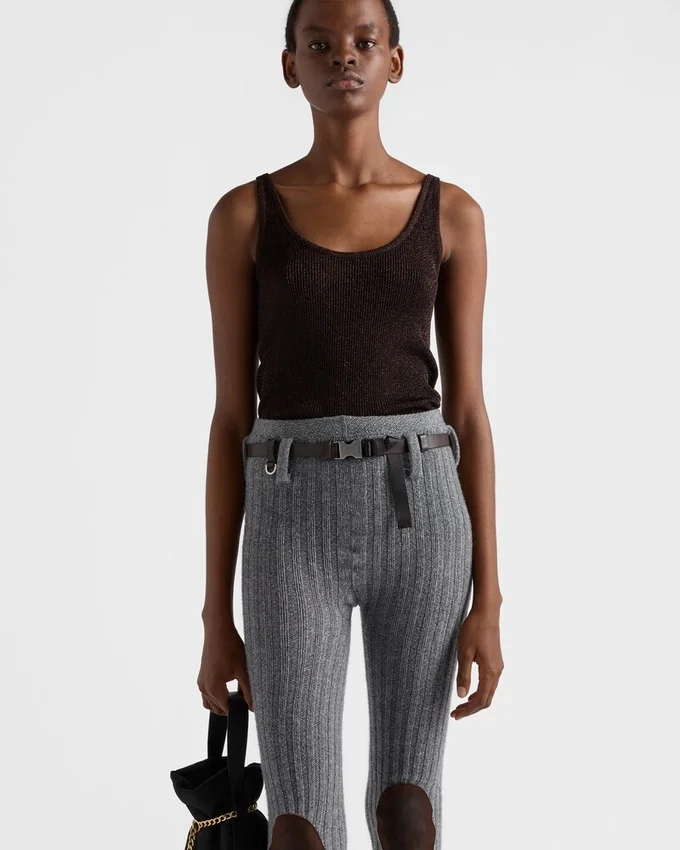 This Slim Fit Lamé Tank Top Features a Sleek Design with Shimmering Reflections. The Silhouette, Enriched by the Ribbed Knit Pattern, is Decorated with the Tonal Triangle Logo.