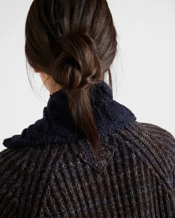 A Play of Delicate Nuances Animates This Cardigan with an Oversized Fit. Moulina Wool Gives Structure and Dimension to the Silhouette Enriched by the Ribbed Knit and Decorated with the Triangle Logo.