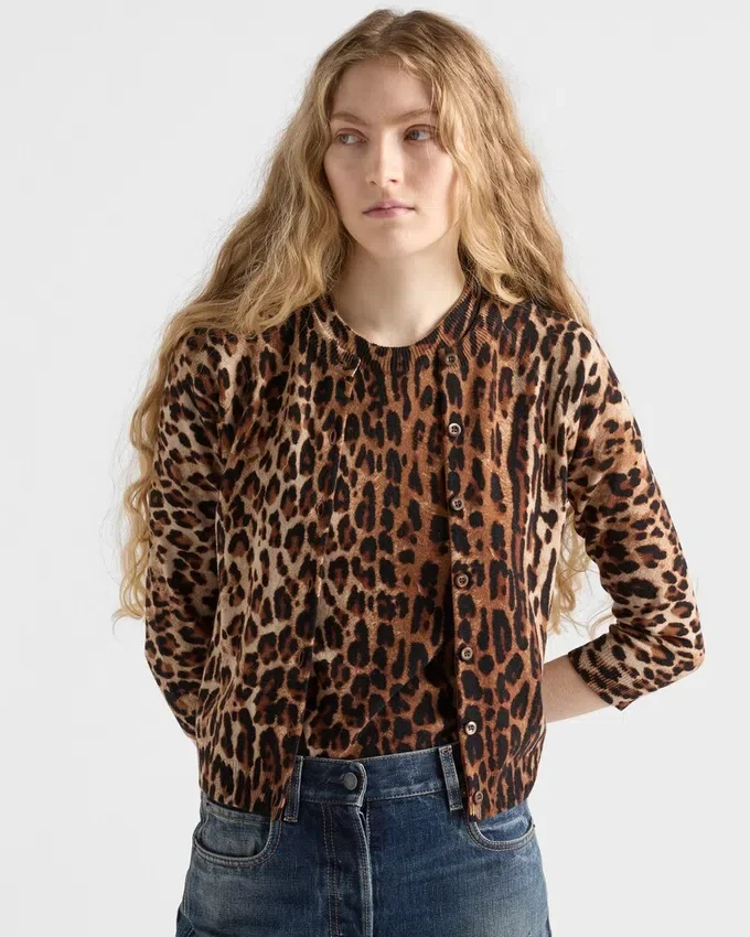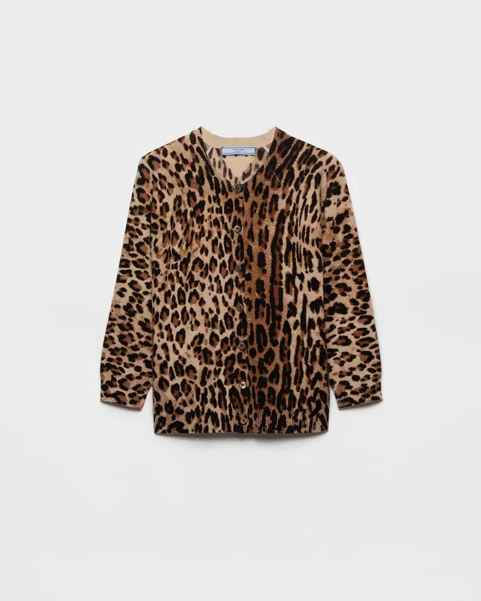 This Elegant Cashmere Cardigan with Bold Style is Characterized by Its Sophisticated Silhouette with Three-Quarter Sleeves. The Style Features an Animal Print That Completes the Bon Ton Design with Character.