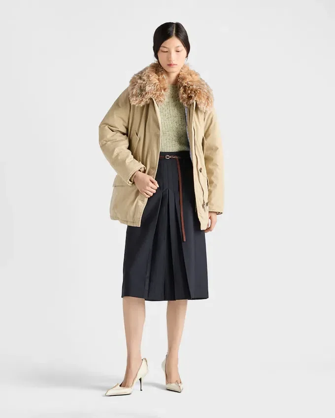• Ribbed Knit Cuffs and Hem