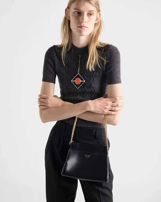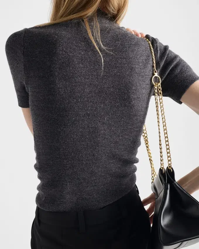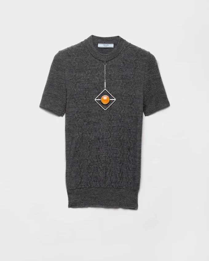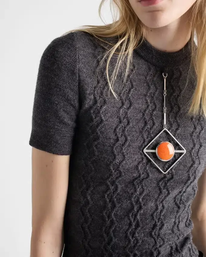 For the Fall/Winter 2025 Collection, Knitwear is Enriched with Jewel Details in a New Dialogue Between Simplicity and Embellishment. A Pendant with a Modernist Design Completes This Short-Sleeved Wool Sweater.