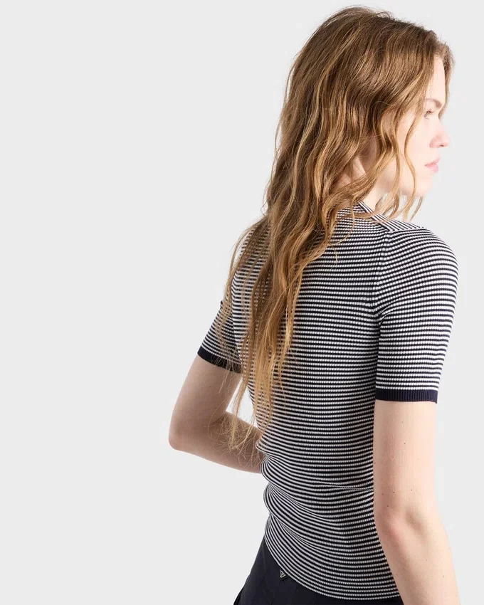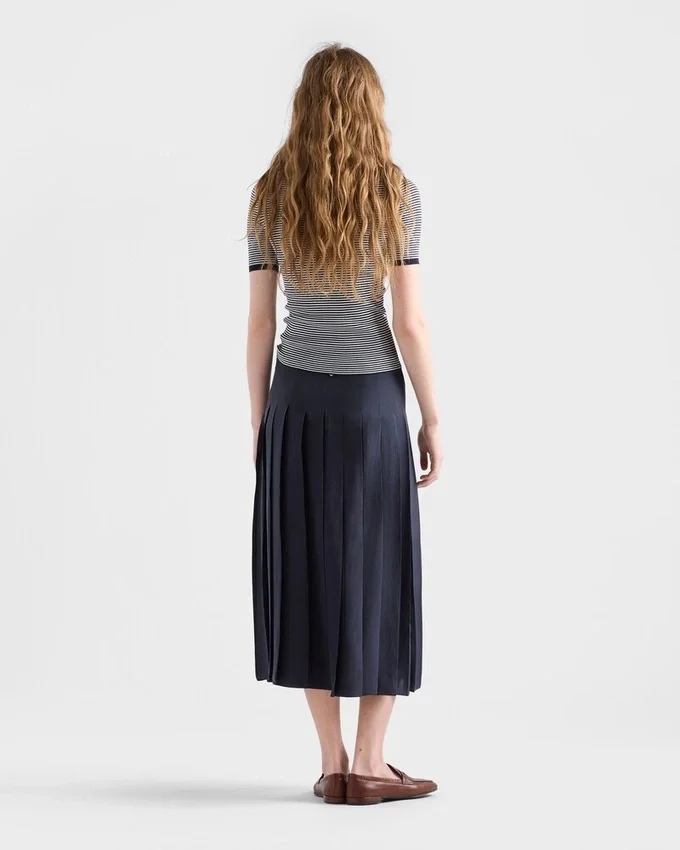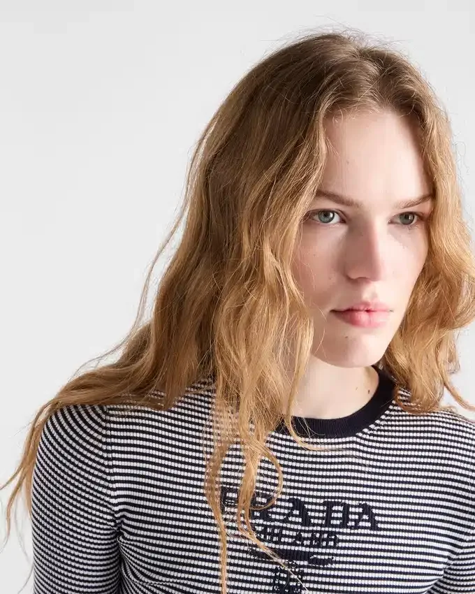 The Fluid and Sophisticated Lightness of Silk Gives a Refined Character to This Striped Sweater, a Summer Classic for Everyday Looks. The Slim Silhouette with Skinny Fit is Completed with the Prada Logo for a Distinctive Note.