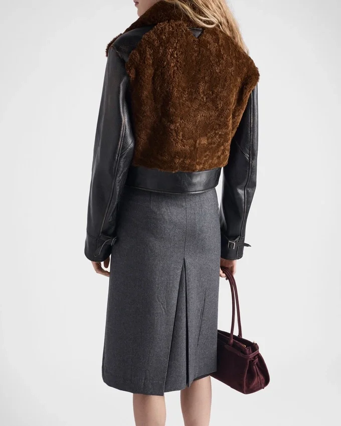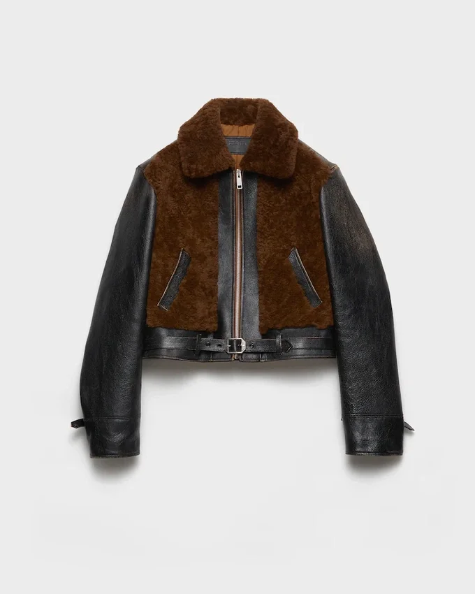 Prada Reimagines the Classic Aviator Jacket with Updated Details and Vintage-Inspired Finishes. Crafted in Leather with Shearling Inserts, the Design is Completed with the Iconic Triangle Logo on the Back.