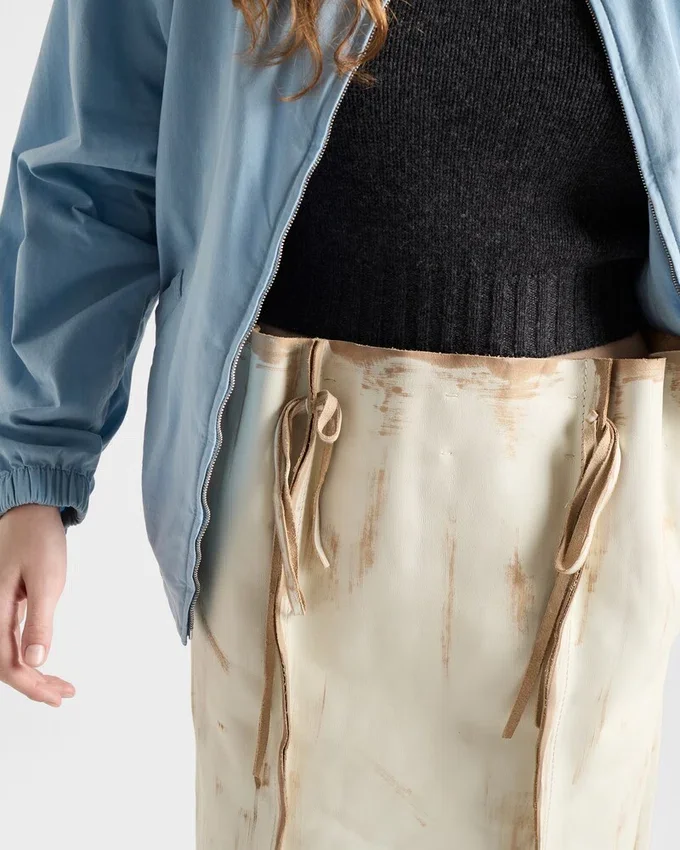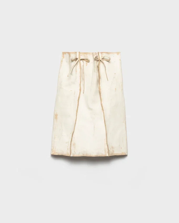 An Innovative Artisanal Construction Defines This Skirt with a Unique and Refined Design. The Piece is Made from Leather with a Rigid Yet Lightweight Texture, Enriched by Treatments That Give It a Worn and Three-Dimensional Appearance. Raw-Cut Edges and Deliberately Unfinished Details Suggest New Interactions Between the Raw Beauty of Imperfection and Tailored Elegance.