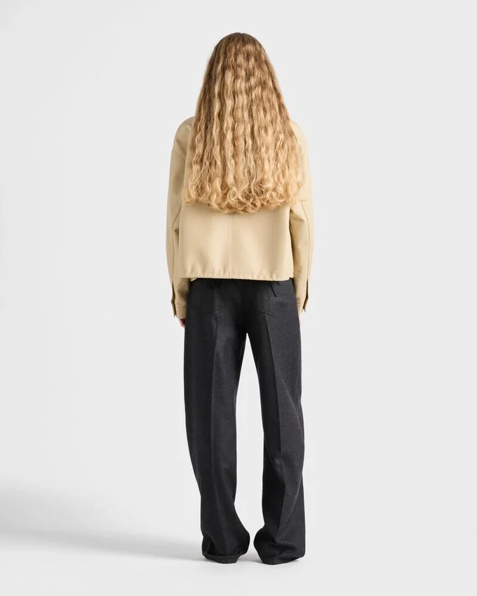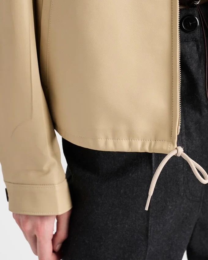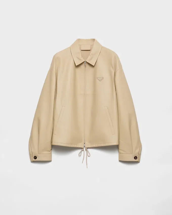 A Sleek Shape Defines This Sophisticated, Contemporary Blouson Jacket. The Minimalist Silhouette is Made of Soft, Light Nappa Leather with a Straight Cut and Sporty Details. The Garment is Pressed Which Gives It a Slightly Wrinkled Appearance, a Distinctive Characteristic of Prada Collections.
