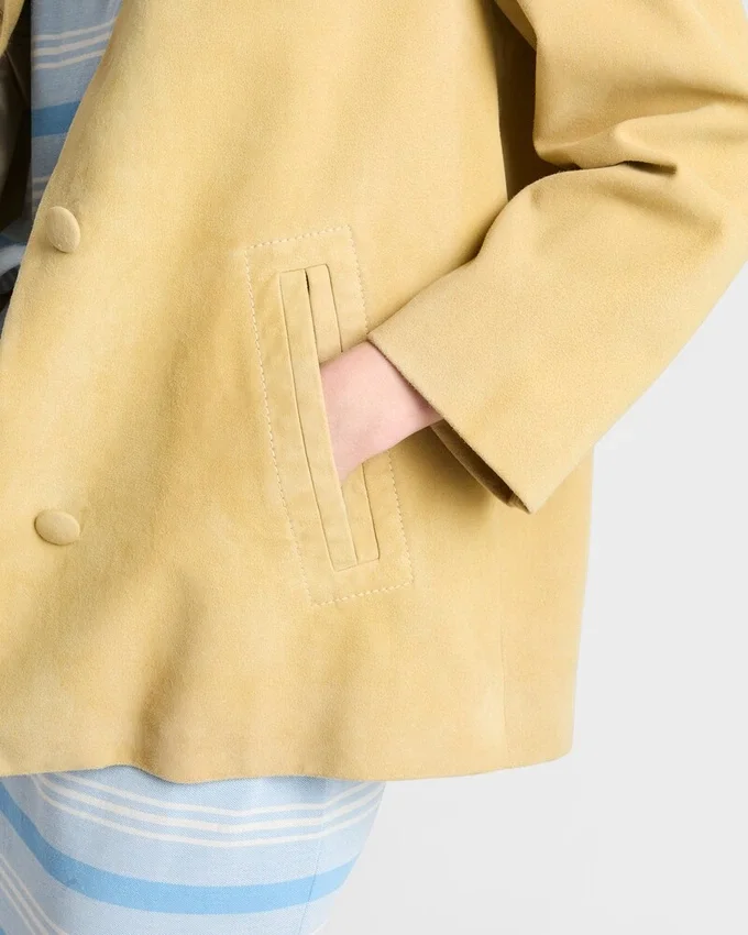 The Softness of Suede Meets the Rigor of Tailored Construction in This Caban Jacket Inspired by Refined, Modernist Minimalism. The Final Treatment of the Garment Creates a Slightly Vintage Look.