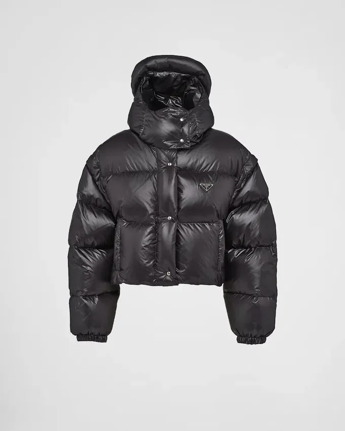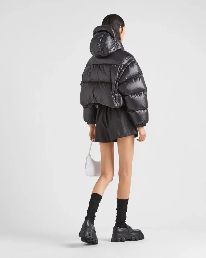 This Down Jacket with a Sporty Design and Techwear Details is Made of Prada’s Iconic Re-Nylon Fabric of Industrial Inspiration Transformed into a New Sustainable Version and Endlessly Regenerated. Versatile and with a Hybrid Character, This Garment with Hood Can Be Transformed into a Vest Thanks to the Detachable Sleeves. Padded with Goose Down, It is Decorated with the Enameled Metal Triangle Logo That Adds an Emblematic Note. For Sustainable Care to Preserve the Product’s Characteristics and Reduce Microfiber Shedding, We Recommend Not Washing the Item Too Often. Let the Product Air out After Every Use and Have It Dry Cleaned at a Specialized Ecological Dry Cleaners.
