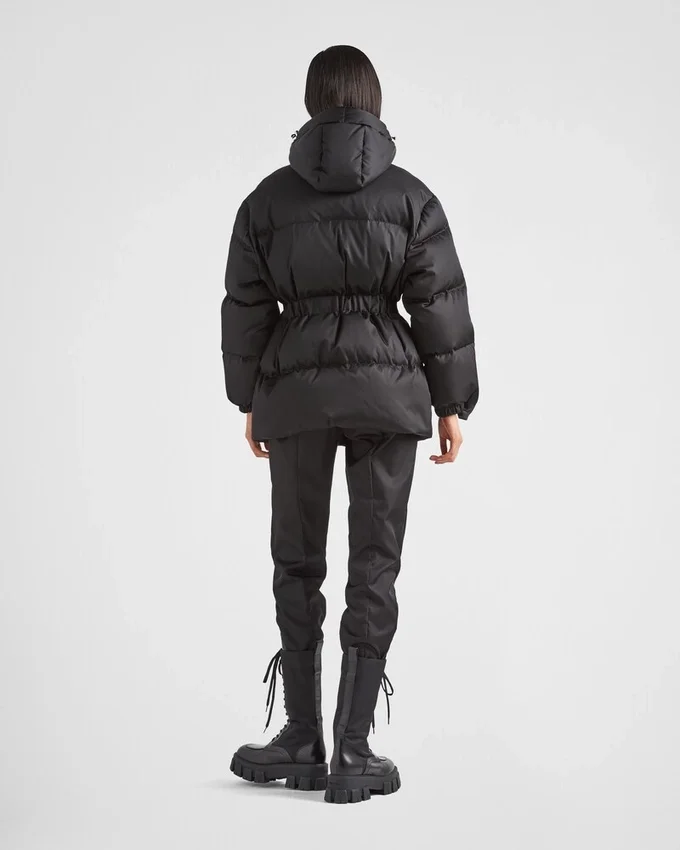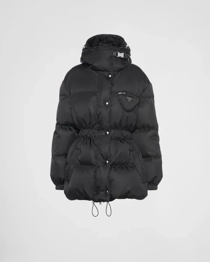 A Characteristic Element of the Fall Winter 2021 Collection, the Three-Dimensional Pocket in the Shape of Prada’s Iconic Triangle Adds an Original Touch to This Hooded Down Jacket. Padded with Soft Goose Down and Made of Innovative Re-Nylon, a Regenerated Nylon Yarn Produced from Recycled, Purified Plastic Trash Collected in the Ocean, the Design Has an Elasticized Band That Emphasizes the Waist and a Side-Release Buckle at the Neck. For Sustainable Care to Preserve the Product’s Characteristics and Reduce Microfiber Shedding, We Recommend Not Washing the Item Too Often. Let the Product Air out After Every Use and Have It Dry Cleaned at a Specialized Ecological Dry Cleaners.