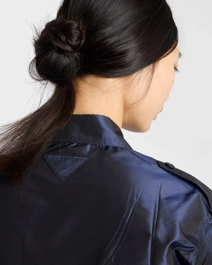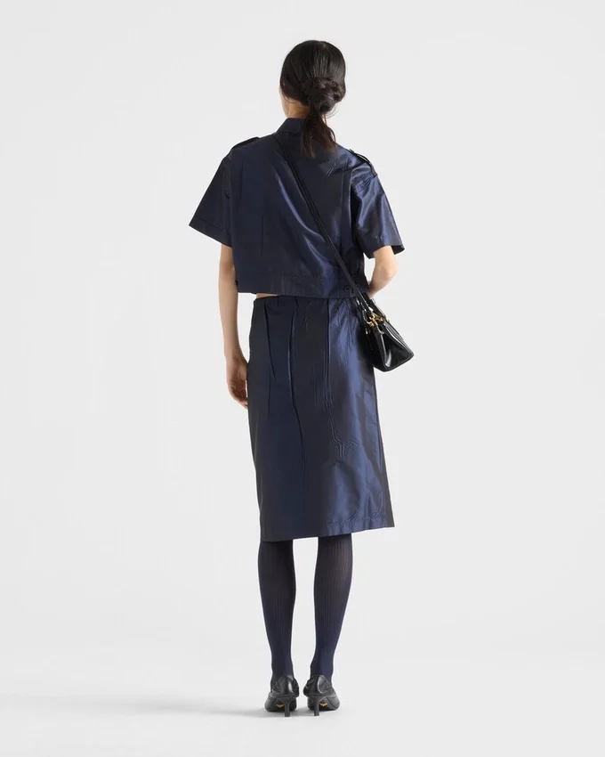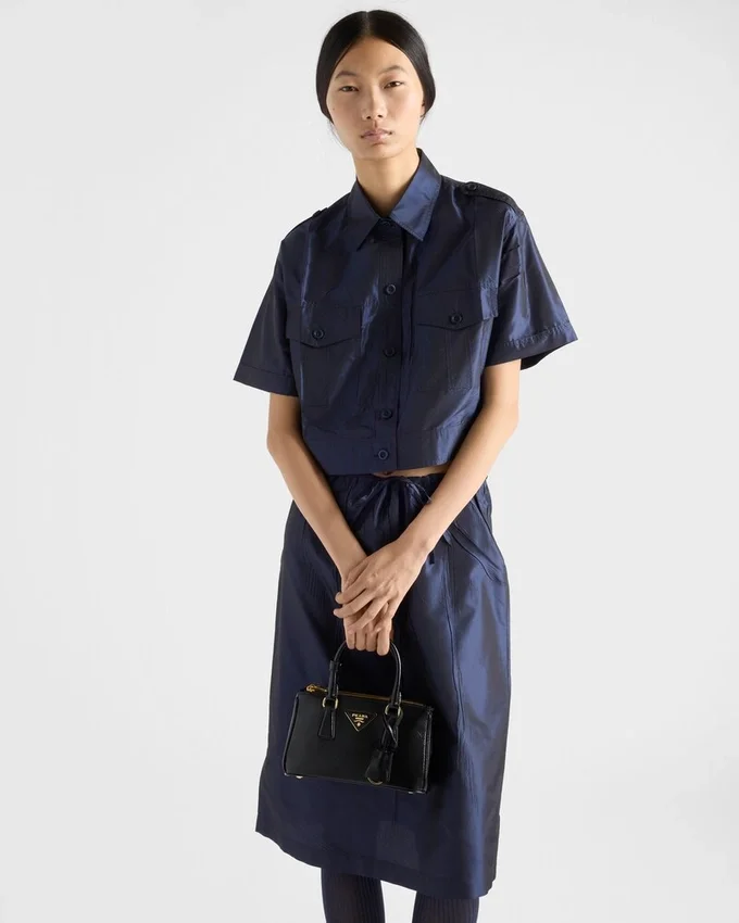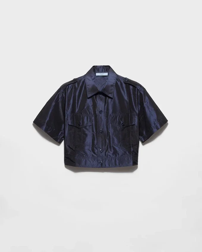 The Elegance of Silk Taffeta Dialogues with Contemporary Lines and Pragmatic Details, Combined in the Design of This Shirt with a Hybrid Essence. The Short-Sleeved Silhouette Features a Cropped Cut, Balancing Softness and Structure, Delicacy and Rigor.