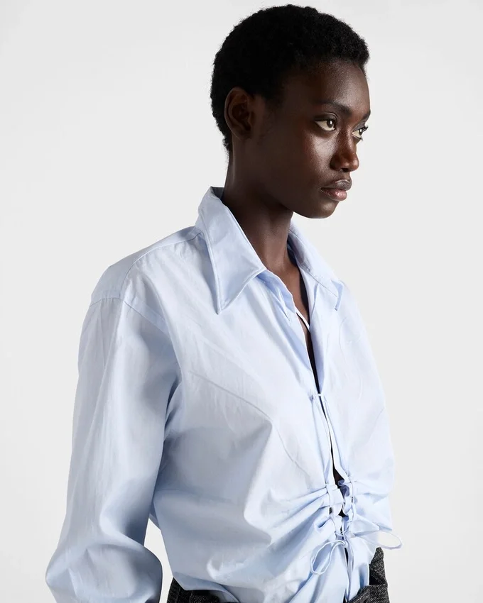 A Design Inspired by Movement, This Fil-à-Fil Shirt Embodies Unconventional, Modernist Style. The Lightweight Silhouette Combines Classic Lines with a Gathered Effect Made with Moldable Elements That Emphasize the Dynamic Character of the Style.