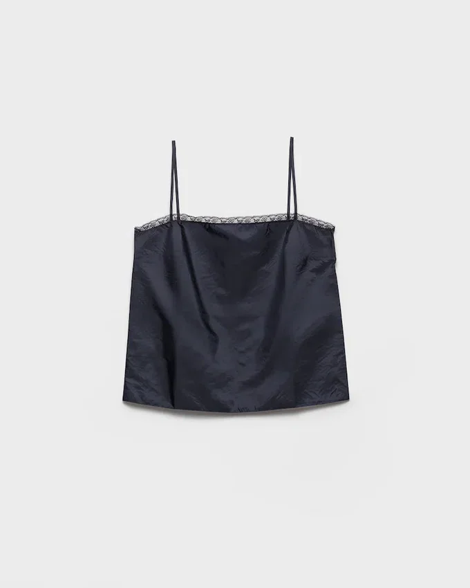 This Delicate, Lightweight Top Made of Re-Nylon Has a Straight Silhouette with Spaghetti Straps. Lace Trim Completes the Garment with a Romantic, Sophisticated Note. For Sustainable Care to Preserve the Product’s Characteristics and Reduce Microfiber Shedding, We Recommend Not Washing the Item Too Often. Let the Product Air out After Every Use and Have It Dry Cleaned at a Specialized Ecological Dry Cleaners.