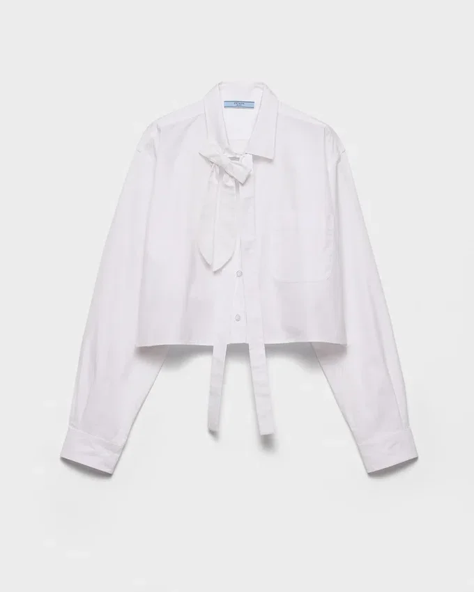This Shirt Made of Cotton Poplin Combines Classic Details with Feminine Notes. The Cropped Silhouette is Characterized by a Small Patch Pocket and Collar with Bow.