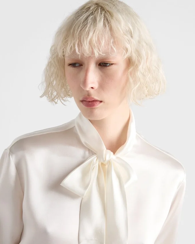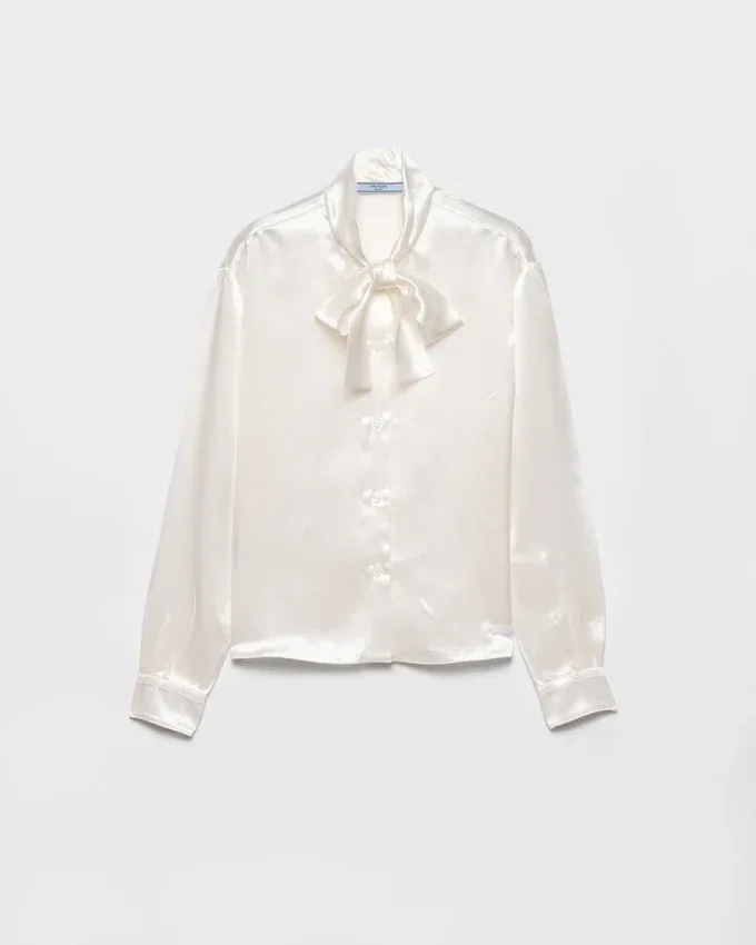 As Light as a Subtle Gesture, This Satin Shirt Floats with Elegance. The Scarf Collar and Sleek Cut Make It a Timeless Garment to Be Worn Naturally.