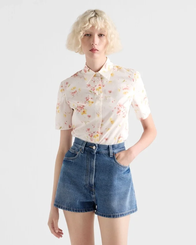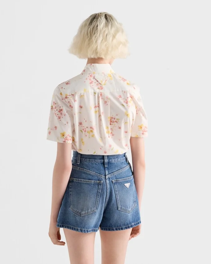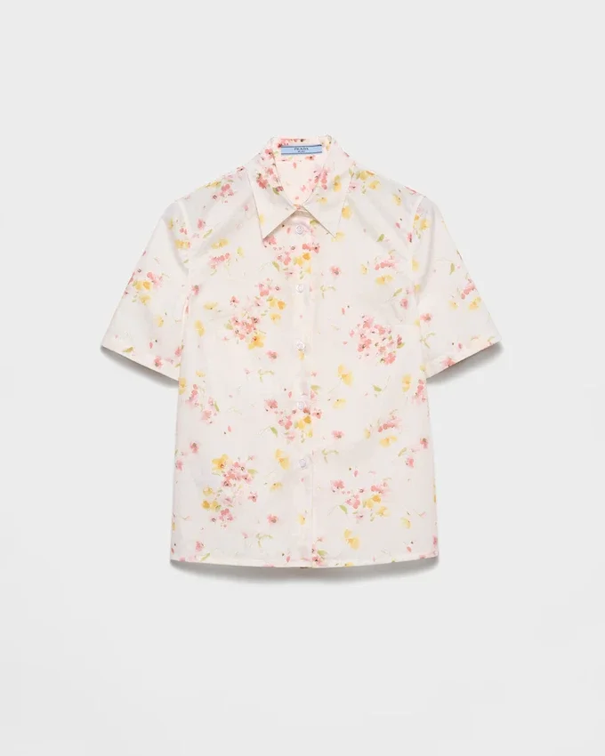 A Delicate Floral Print Embellishes This Short-Sleeved Shirt with Sleek Lines. The Poplin Garment Embodies a Romantic and Sophisticated Style.